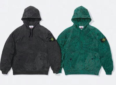 2023年10月28日、ストーンアイランド(STONE ISLAND)とシュプリーム(Supreme)の待望のコラボレーションコレクションが発売された。今回のラインナップは、アウターからトップス、アクセサリーに至るまで幅広く、両ブランドの魅力を凝縮した豪華なフルコレクションとなっている。特に注目されるのは、ストーンアイランド独自の素材研究と、シュプリームらしい大胆なデザインが融合したアウター類だ。なかでも“製品染め”を施したデニムトラッカージャケットは、シュプリームコピーコットンブルデニムにリフレクティブ樹脂をラミネートすることで、一点ごとに異なる表情を生み出している。染色後に反射フィルムを不規則に貼り合わせる技法によって、ユーズド感と未来的な光沢が共存する独自の仕上がりとなった。このジャケットはセットアップとしてパンツと合わせることで、よりコレクションの世界観を体感できる。